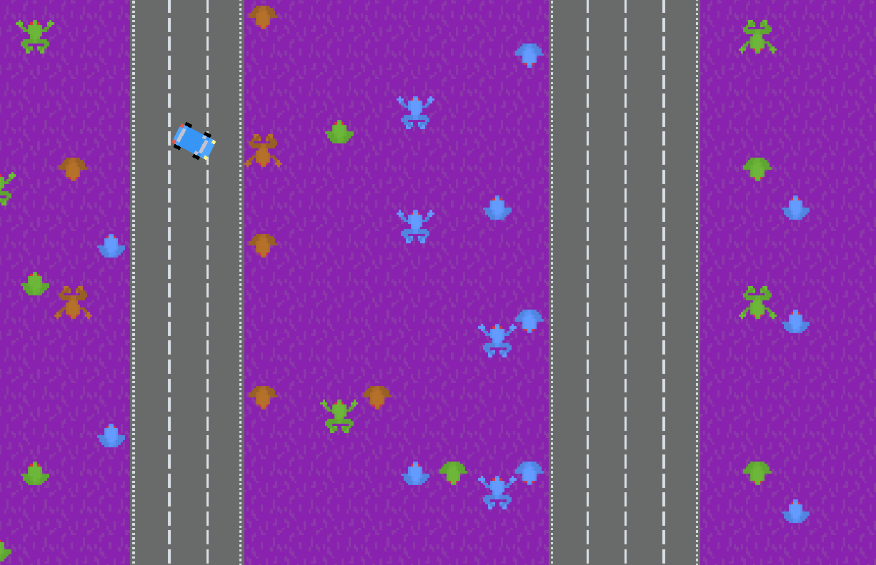 Dodge frogs while crossing the swamp in your car to reach the parking lot on the far side!